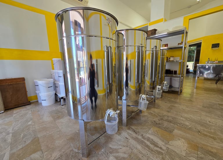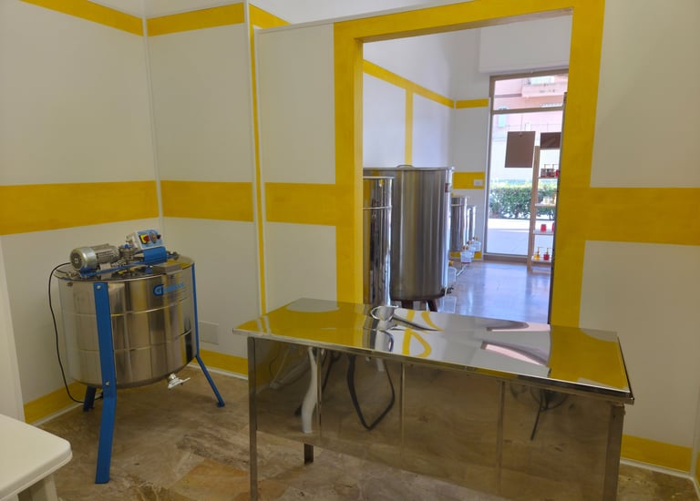 Situato a Ceriale, in via Aurelia 128b (sotto i portici), potrete trovare il fulcro del processo produttivo. Qui è dove viene estratto il nostro miele, il tutto effettuato tramite operazioni manuali ed artigianali. L'estrazione del miele dai favi è eseguita a freddo e tramite centrifugazione per non alterare le qualità del miele.